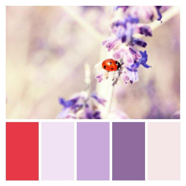 This delicate and enchanting palette captures the essence of a spring garden in full bloom. The vibrant red of a ladybug stands out against soft lavender and lilac hues, creating a harmonious blend of warm and cool tones. The palette evokes feelings of joy, renewal, and gentle beauty, making it perfect for various design applications. In branding, it would suit businesses in the beauty, wellness, or children's products sectors. For interior design, it's ideal for nurseries, romantic bedrooms, or tranquil spa spaces. The combination of red and purple tones also makes it suitable for skin-flattering makeup palettes. This spring-inspired color scheme brings a touch of whimsy and natural charm to any project, balancing the boldness of red with soothing purple shades.